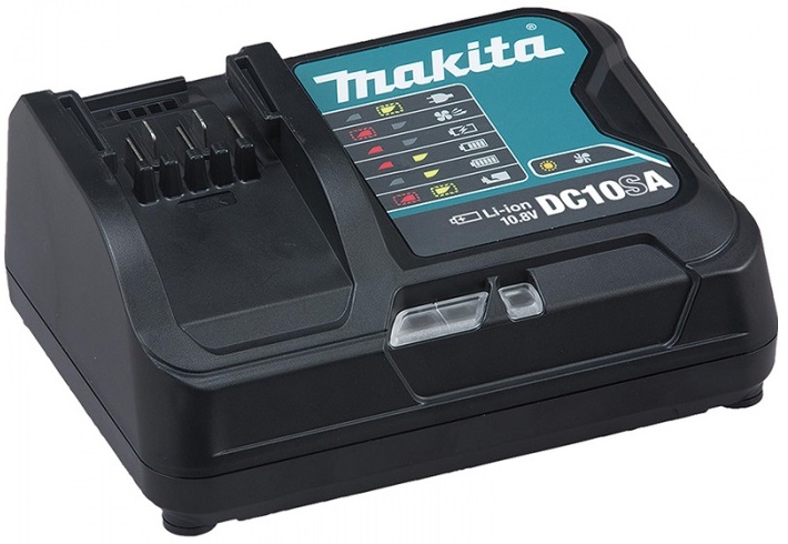 Зарядное устройство Makita DC10SA (197347-2), предназначено для зарядки литий-ионных (Li-ion) аккумуляторов с напряжением 10.8 В. Оснащено световым датчиком контроля степени заряда аккумулятора. Модель аккумулятора: BL1015B (197391-9), BL1020B (197395-1), BL1040B (197403-8) и т.п.