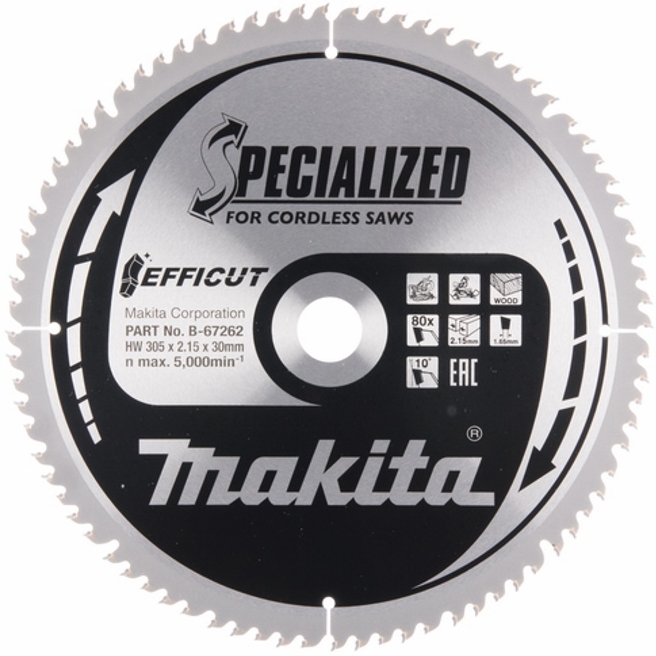 Расширение линейки дисков с твердосплавными напайками — EFFICUT. Диски EFFICUT специально разработаны для использования с аккумуляторным инструментом и имеют ряд инновационных технологий. Тонкое лезвие и специальная форма зуба снижают сопротивление и нагрузку на двигатель пилы, в результате количество резов от одной зарядки увеличивается до 2,4 раз. Лазерные прорези особой геометрии заполнены резиновым компаундом, вследствие чего диск имеет низкий уровень шума.
