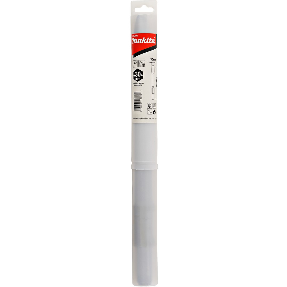 Плоское долото Makita P-15300 с большим ресурсом и с увеличенной скоростью образования канавки. Применяется при снятии бетона, штукатурки и прочих слоистых старых материалов. Крепление осуществляется при помощи шестигранного хвостовика. В нашем интернет магазине MAKITA.ONE, Вы можете купить товар – Долото плоское по бетону 30×400 мм с шестигранным креплением 30 мм Makita P-15300 для отбойного молотка HM1300, HM1303, HM1304, HM1307C, HM1317C, HM1400, HM1500. Оформить покупку легко с помощью корзины или отправить запрос нам на электронную почту. Подробную информацию по товару вы можете получить у наших менеджеров или в службе технической поддержки Макита по телефонам указанным на сайте.