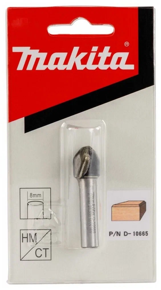 Универсальная фреза для прямого и наклонного фрезерования торцов Makita D-10665. Хвостовик 8 мм подходит для большинства триммеров и фрезеров. диаметр 12.7 мм, длина режущей части 12.7 мм, хвостовик 8 мм, длина 32 мм, угол 45°.