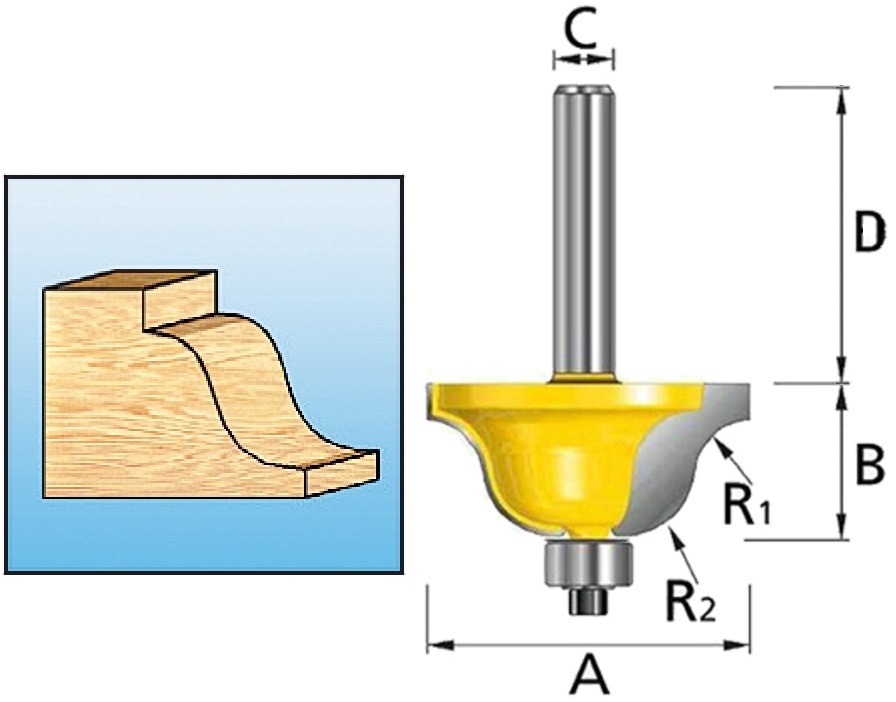 Фреза кромочная калевочная Гусек с опорным подшипником Макита Д-11695 подходит к фрезерам и триммерам с цангой 8 мм. Диаметр фрезы А=31.8 мм, длина хвостовика D=32 мм, длина режущей части B=14.28 мм, диаметр хвостовика С= 8 мм, радиус R=3.18 мм, диаметр подшипника Е=12.7 мм, 2 режущих кромки.