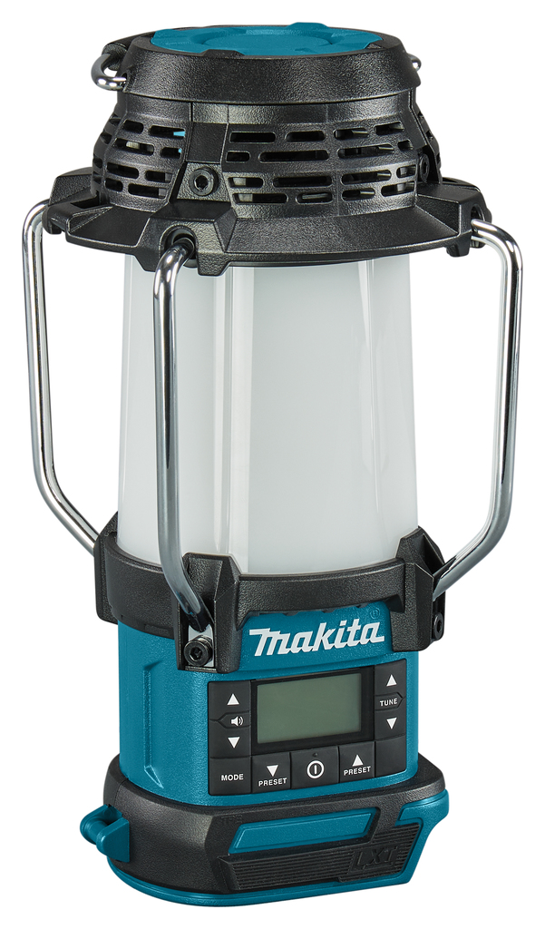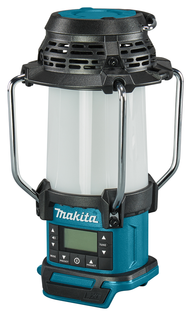 Makita DMR055 - это забавный и практичный походный фонарь с функцией радио и Bluetooth. Он оснащен DAB + и FM-тюнером и может сохранять 9 каналов. Для лампы вы можете выбрать один из 3-х светлых абажуров, яркость которых также можно настроить. Кроме того, в топ также была добавлена функция фонарика. Существует также USB-порт, через который, например, можно заряжать ваш телефон.