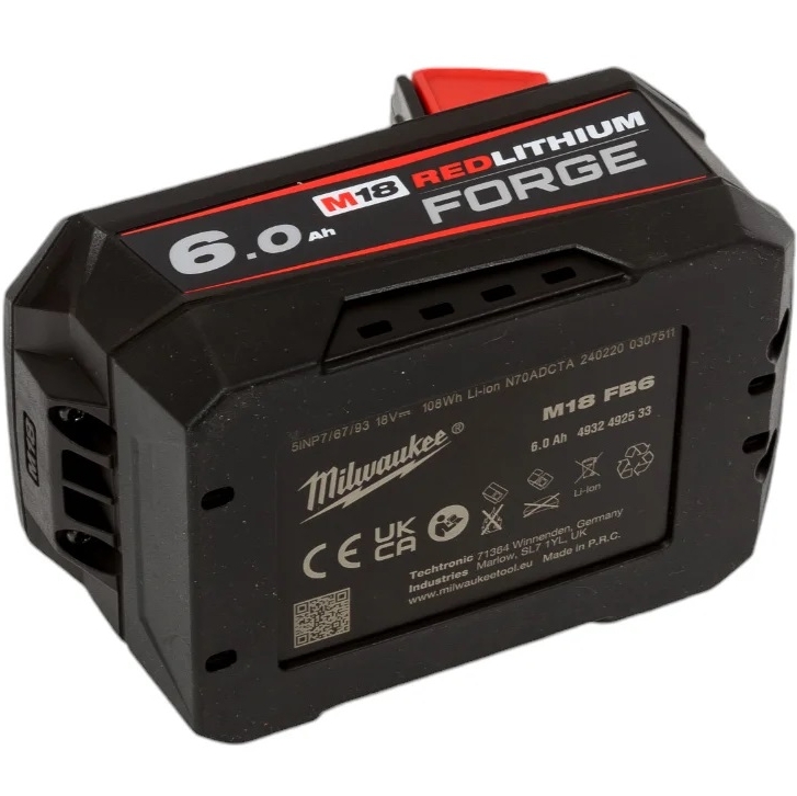 Аккумулятор Li-Ion, 18 В, 6.0 Ач, M18 FB6 Milwaukee 4932492533 подходит для работы с инструментами Milwaukee серии M18™. Разработан с помощью специальных технологий, которые увеличивают мощность аккумулятора до 50%, по сравнению с другими сериями. Батарея имеет оптимальное соотношение мощности и веса. Характеризуется отсутствием "эффекта памяти", заряжать его можно при любой степени разрядки. Новые аккумуляторы Milwaukee на 50% мощнее и в 2 раза дольше держат заряд (в сравнении с предыдущими версиями аккумуляторов Milwaukee).
