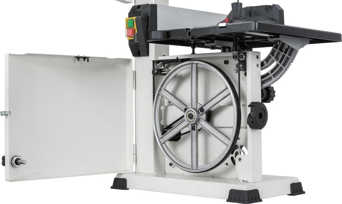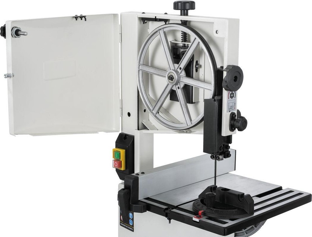 Важное достоинство JWBS-9SL – рычаг для быстрого натяжения и ослабления ленты, позволяющий оперативно переходить от состояния хранения к рабочему и обратно. Механизм имеет большой рабочий диапазон и нечувствителен даже к значительным неточностям длины полотна: инструкция допускает отклонения +/- 3 мм от штатных 1575 мм, но это значение указано «с запасом».
