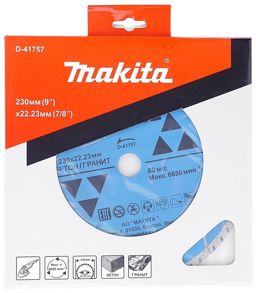 Алмазный сегментированный рифленый диск Макита Д-41757 предназначен для работ по бетону. Диск отлично подходит для быстрой и стабильной резки. Купить товар - Алмазный диск по бетону и граниту 230x22.23 мм, сухая резка Makita D-41757 очень просто, достаточно положить товар в «корзину» и оформить заказ или позвонить нам по телефону, так же можно для Вашего удобства, отправить заявку на Е-майл.