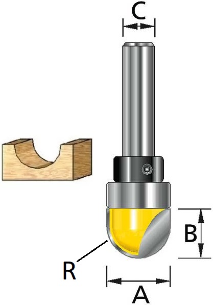 Пазовая галтельная фреза Makita D-11134, предназначена для триммеров и фрезеров. Диаметр A=12 мм, длина режущей части B=16 мм, хвостовик C=8 мм, длина D=38 мм, радиус R=6 мм, подшипник 12 мм, 2 режущие кромки.