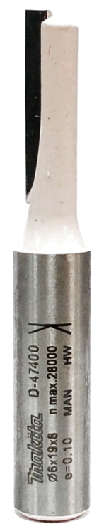 Пазовая фреза Makita D-47400 с одной режущей кромкой для выборки пазов. Подходит к триммерам и фрезерам с диаметром цанги 8 мм. С использованием зажимной втулки может быть адаптирована под фрезеры с большим диаметром цанги 12 мм. Длина 50,8 мм, диаметр режущей части 6 мм, длина режущей части 19 мм, хвостовик 8 мм, количество режущих кромок 1.
