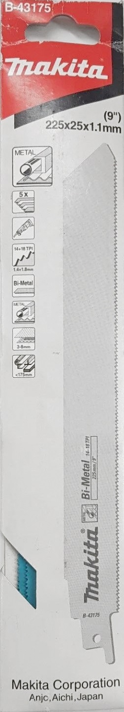 Биметаллическое полотно для сабельной пилы, рассчитанное на долгий срок службы. С высокой подставкой для большей устойчивости. Точные и чистые прямые пропилы под углом. С запатентованной технологией геометрии зубьев 2x2. Специально для тонкостенных профилей и труб. Полотно Basic Макита В-43175, предназначено для работ по металлу совместно с сабельной пилой Макита. В нашем интернет магазине MAKITA.ONE, Вы можете купить товар – Сабельная пилка для металла 225x1,1x14-18TPI, 5 шт Makita B-43175. Оформить покупку легко с помощью корзины или отправить запрос нам на электронную почту. Подробную информацию по товару вы можете получить у наших менеджеров или в службе технической поддержки Макита по телефонам указанным на сайте.