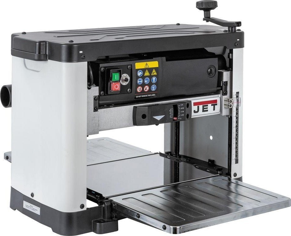 Переносной рейсмусовый станок JET JWP-12L, он же электро-рубанок, предназначен для строгания деревянных заготовок (брусков). Оснащен двигателем мощностью 1,8 кВт. Откидываемые роликовые подающий и разгрузочный столы облегчают работу. Рейсмус отличаются удобством транспортировки и эксплуатации.