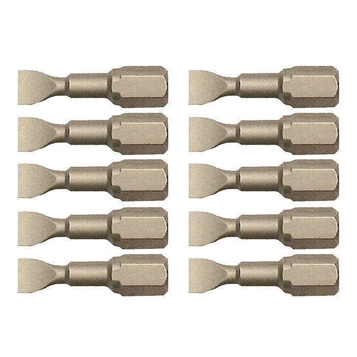 Бита Makita P-06242 — сменная насадка с плоским шлицем (S) для монтажа/демонтажа шурупов. Данный тип шлица имеет геометрию, которая способствует лучшей передаче усилия к шурупу. В упаковке 10 штук.