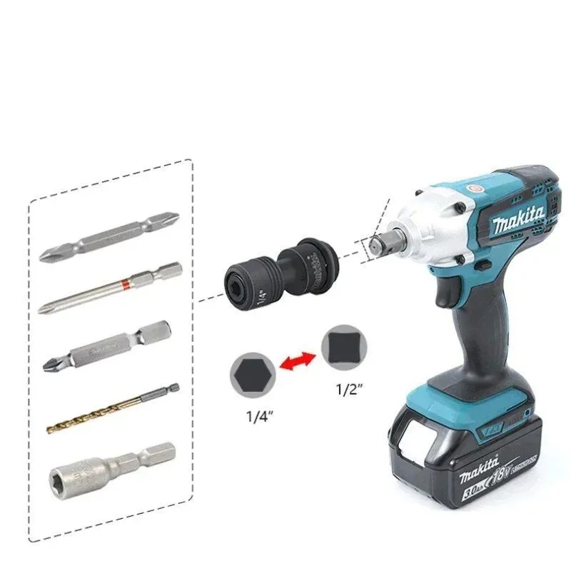 Адаптер торцевого ключа Makita B-68476 представляет собой переходник с квадрата 1/2" на шестигранника 1/4" для гайковерта и предназначен для завинчивания и вывинчивания крепежных гаек. Адаптер Макита В-68476 выполнен из высококачественных материалов и выдерживает экстремальные нагрузки.