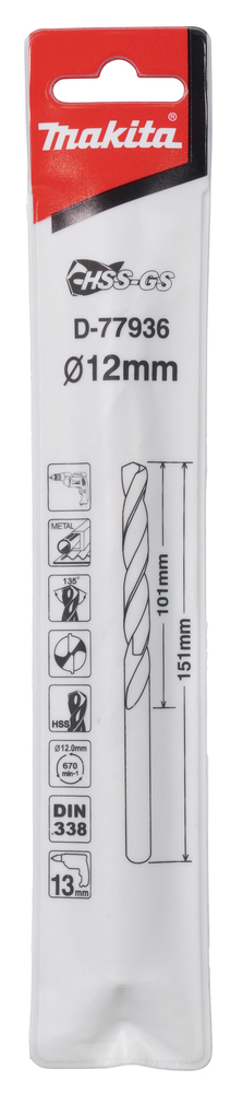 В нашем интернет магазине MAKITA.ONE, Вы можете купить товар – Сверло по металлу HSS-GS 12x151 Makita D-77936. Оформить покупку легко с помощью корзины или отправить запрос нам на электронную почту. Подробную информацию по товару вы можете получить у наших менеджеров или в службе технической поддержки Макита по телефонам указанным на сайте.