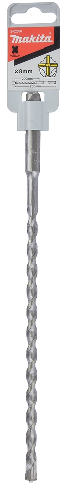 Сверло-молоток SDS-PLUS для сверления железобетона. Наконечник из карбида вольфрама повышает эффективность работы. Это сверло имеет общую длину 260 мм, рабочую длину 200 мм и диаметр 8 мм. Центрирующий наконечник обеспечивает простое и точное позиционирование.