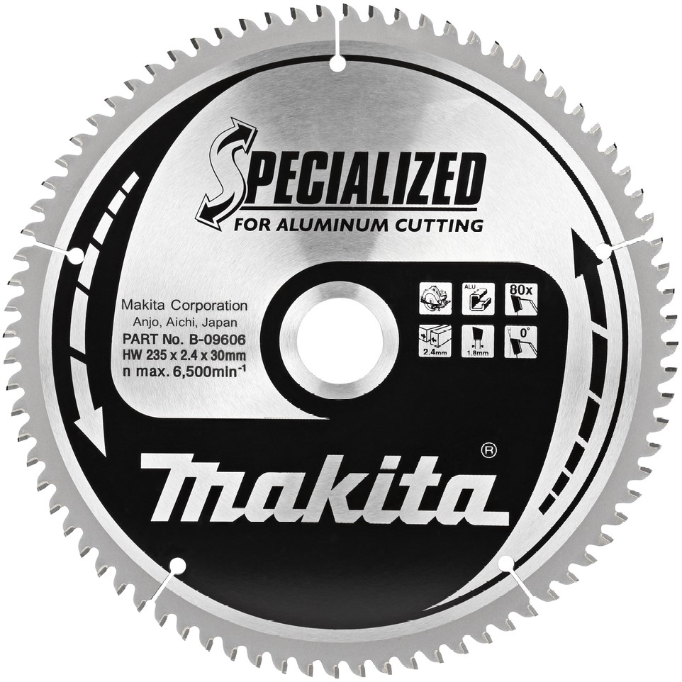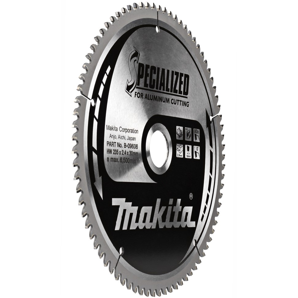 Пильный диск для алюминия Makita B-09606 (аналог: B-31491), предназначен для распила алюминия, меди, латуни, бронзы и других, не содержащих железо металлов. Кроме того, подходят для резки пластика и ламината. Тонкий стальной корпус для точного прямого реза, а специальная форма зуба обеспечивает качественный распил материалов. Купить товар - Диск пильный для алюминия, HW, 235x2.4x30 мм, 80T, 0G, TCG Makita B-09606 для дисковой пилы 5903R, 5903RK, DHS900Z, DHS900ZU очень просто, достаточно положить товар в «корзину» и оформить заказ или позвонить нам по телефону, так же можно для Вашего удобства, отправить заявку на Е-майл.