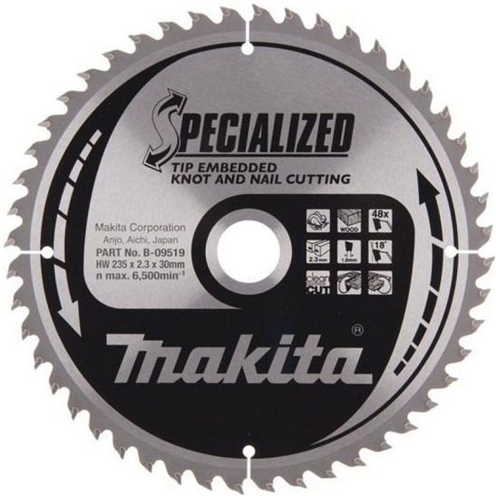 Пильный диск специально предназначен для распила старых пиломатериалов и демонтажных работ. Диск обладает повышенной прочностью зубьев, так как зубья диска глубоко впаяны. Благодаря перечисленным свойствам диск обеспечен долговечностью, высокой производительностью и износостойкостью, и легко справится с гвоздями, оставшимися в древесине. Купить товар - Диск пильный для дерева с гвоздями, 235х2.3х30 мм, 48T, 18G, ATB Makita B-09519 (аналог: B-31435, A-81795) для дисковой пилы 5903R, 5903RK, DHS900Z, DHS900ZU, очень просто, достаточно положить товар в «корзину» и оформить заказ или позвонить нам по телефону, так же можно для Вашего удобства, отправить заявку на Е-майл.