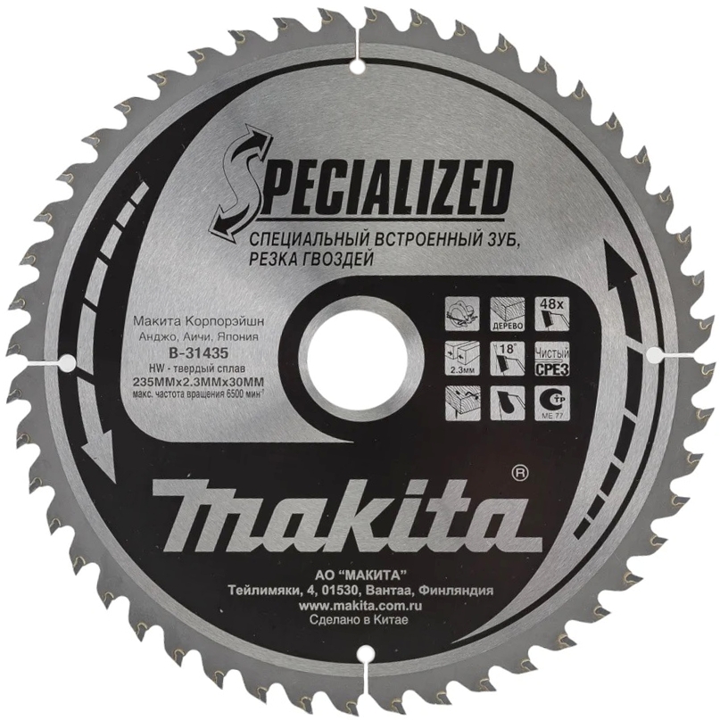 Купить товар - Диск для дерева с гвоздями 235x2.3x30, 48T, 18G, ATB Makita B-31435 очень просто, достаточно положить товар в «корзину» и оформить заказ или позвонить нам по телефону, так же можно для Вашего удобства, отправить заявку на Е-майл.