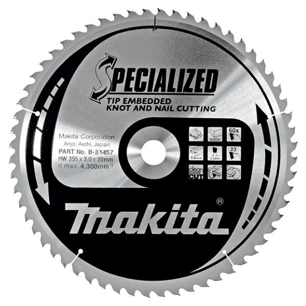 Пильный диск для демонтажных работ Makita B-31457 (аналог: B-09466), специально предназначен для распила старых пиломатериалов и демонтажных работ. Диск обладает повышенной прочностью зубьев, так как зубья диска глубоко впаяны.