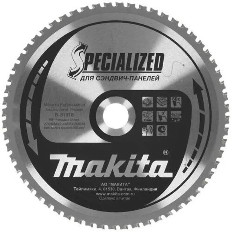 Купить товар - Пильный диск для Сэндвич-панелей, 270x2.4x30 мм, 60T, 0G, SMTCG Makita B-31516 очень просто, достаточно положить товар в «корзину» и оформить заказ или позвонить нам по телефону, так же можно для Вашего удобства, отправить заявку на Е-майл.
