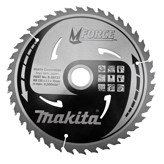 Диск пильный для дерева M-Force, 235х2.3х30/20/15.88 мм, 40T, ATB Makita B-08121 - Описание: