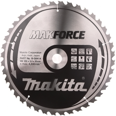 Купить пильный диск для дерева Makforce 355х3.0х30 мм, 40T, ATB Makita B-08414, очень просто, достаточно положить товар в «корзину» и оформить заказ или позвонить нам по телефону, так же можно для Вашего удобства, отправить заявку на Е-майл.