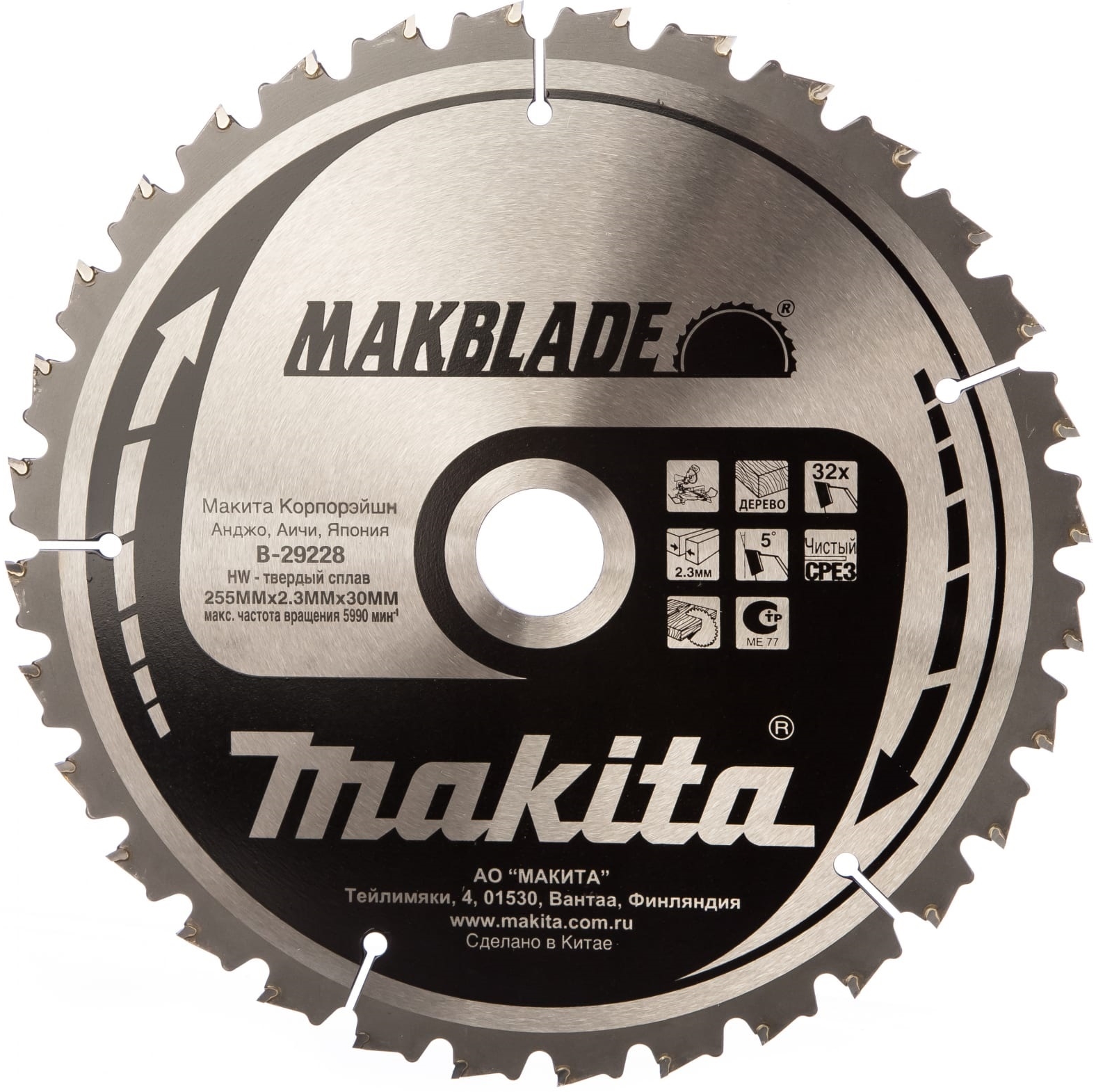 Пильный диск Makblade Makita B-29228 – твердосплавный диск высокого класса с низким износом для долгой работы. Диск подходит для беспроводных торцовочных пил. Закаленное и точно отбалансированное лезвие способно поглощать удары и обеспечивает точный и прямой рез. Предназначен для работ по дереву. Купить пильный диск для дерева Makblade 255x2.3x30 мм, 32T, ATAF Makita B-29228, очень просто, достаточно положить товар в «корзину» и оформить заказ или позвонить нам по телефону, так же можно для Вашего удобства, отправить заявку на Е-майл.