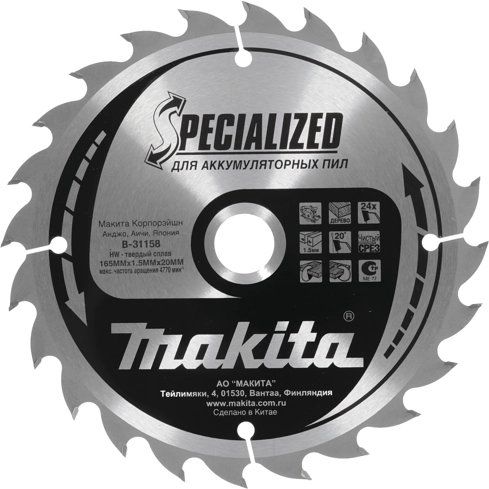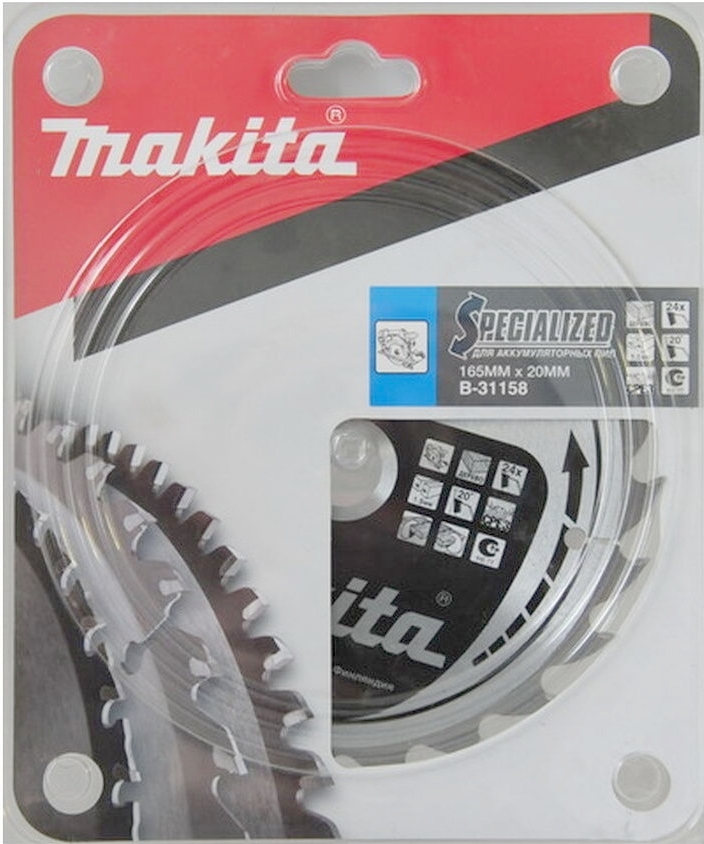 Пильный диск премиум-класса Макита В-31158 (Аналог / Замена: В-09167) предназначен для аккумуляторных пил Makita. Диск обладает высокой надежностью, производительностью и увеличенным ресурсом. Уменьшает перегрузку, сохраняет аккумулятор и защищает двигатель инструмента.
