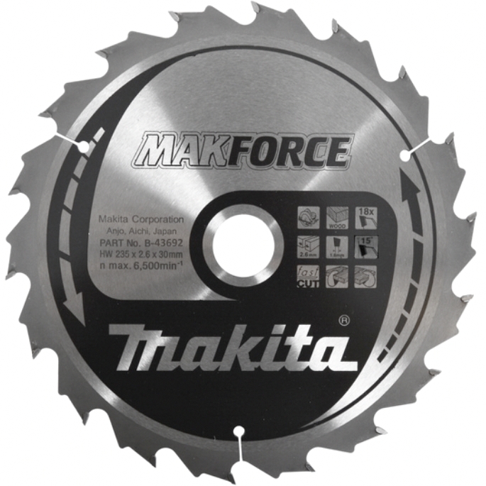 Купить товар - Диск пильный для дерева Makforce, HW, 235x2.6x30 мм, 18T, 15G, ATAF Makita B-43692 очень просто, достаточно положить товар в «корзину» и оформить заказ или позвонить нам по телефону, так же можно для Вашего удобства, отправить заявку на Е-майл.