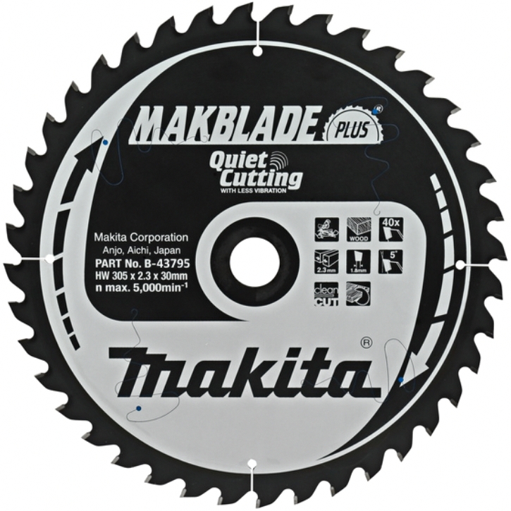 Пильный диск высокого класса с низким износом для долгой работы. Твердосплавный диск МАКБЛЭЙД ПЛЮС МАКИТА В-43795 подходит для беспроводных торцовочных пил. Закаленное и точно отбалансированное лезвие способно поглощать удары и обеспечивает точный и прямой рез. Лезвие диска Макблэйд-плюс покрыто защитным слоем, снижающим трение и уровень шума и предохраняющим от налипания смолы, краски или клея. Купить товар - Диск пильный для дерева Makblade-Plus, HW, 305x2.3x30 мм, 40T, 5G, ATB Makita B-43795, по выгодной цене очень просто, достаточно положить товар в «корзину» и оформить заказ или позвонить нам по телефону, так же можно для Вашего удобства, отправить заявку на Е-майл.