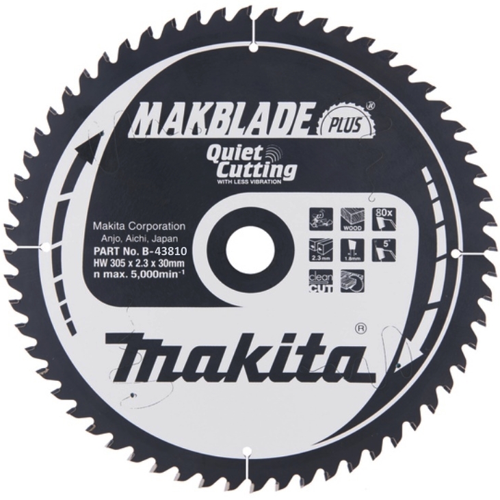 Пильный диск Makblade-Plus Makita B-43810 – твердосплавный диск высокого класса с низким износом для долгой работы. Диск подходит для беспроводных торцовочных пил. Закаленное и точно отбалансированное лезвие способно поглощать удары и обеспечивает точный и прямой рез. Лезвие диска покрыто защитным слоем, снижающим трение и уровень шума и предохраняющим от налипания смолы, краски или клея. Купить товар - Диск пильный для дерева, 305x2.3x30 мм, 80T, ATB, Makblade-Plus Makita B-43810 очень просто, достаточно положить товар в «корзину» и оформить заказ или позвонить нам по телефону, так же можно для Вашего удобства, отправить заявку на Е-майл.