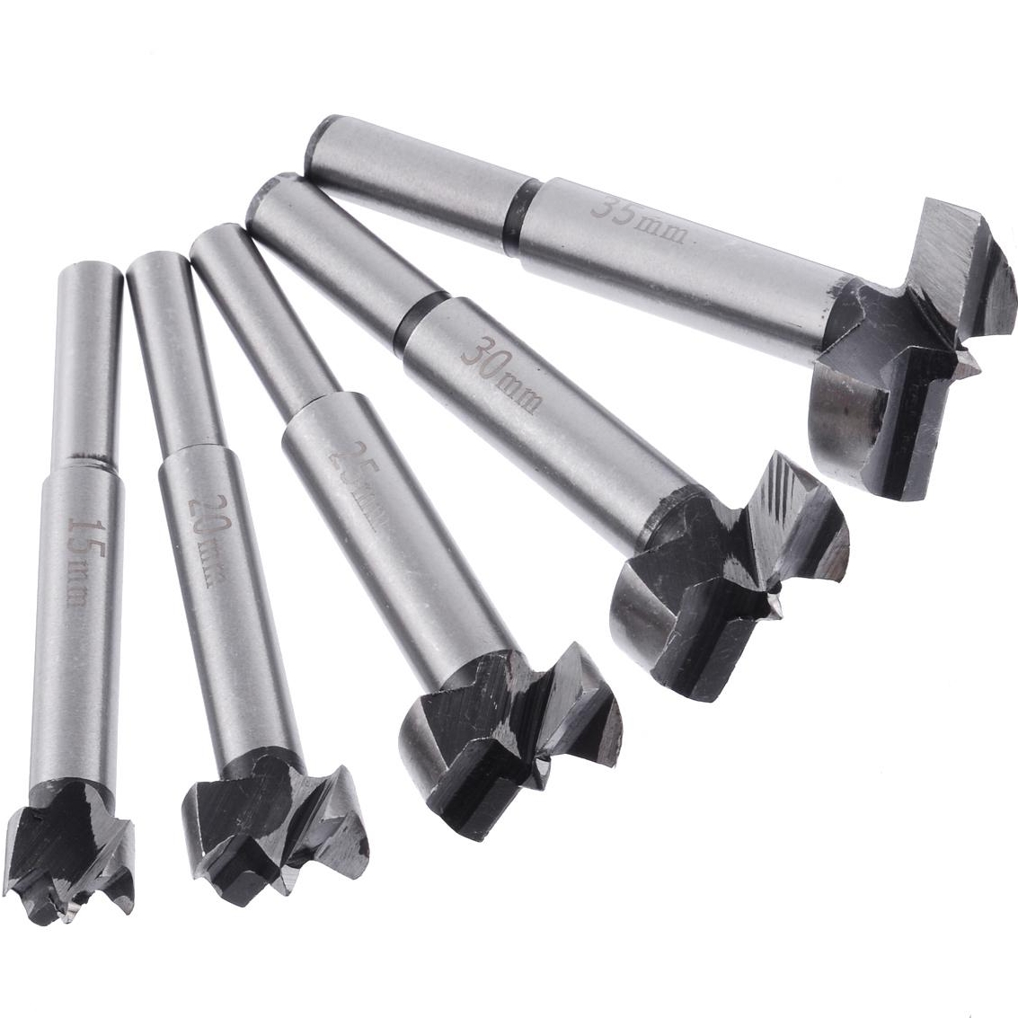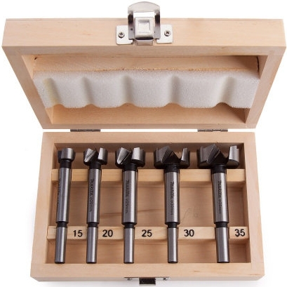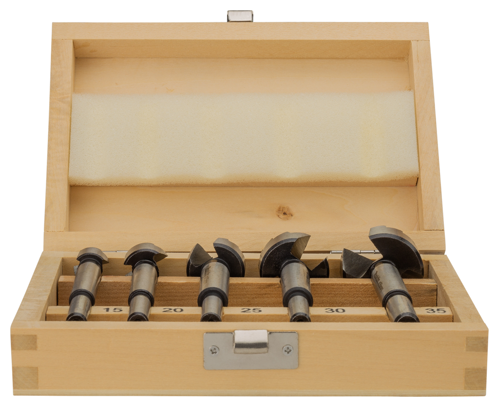 Сверла Форстнера оснащены центрирующей точкой и двумя режущими поверхностями. Для сверления неглубоких чистых отверстий с плоским дном в древесине. Поставляется в запирающемся деревянном ящике. Размеры в мм: [15 / 20 / 25 / 30 / 35]. Вал: 10 мм. Длина 90 мм.